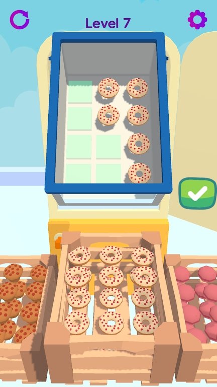 1、创新的收集和填充玩法。 玩家需要收集汉堡并将其装入木箱中才能解锁并通过关卡。