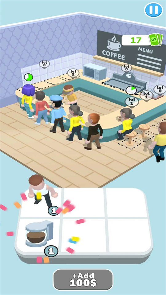 3、玩家可以招聘员工、提升技能、研发新品种,充分体验咖啡店业的魅力。