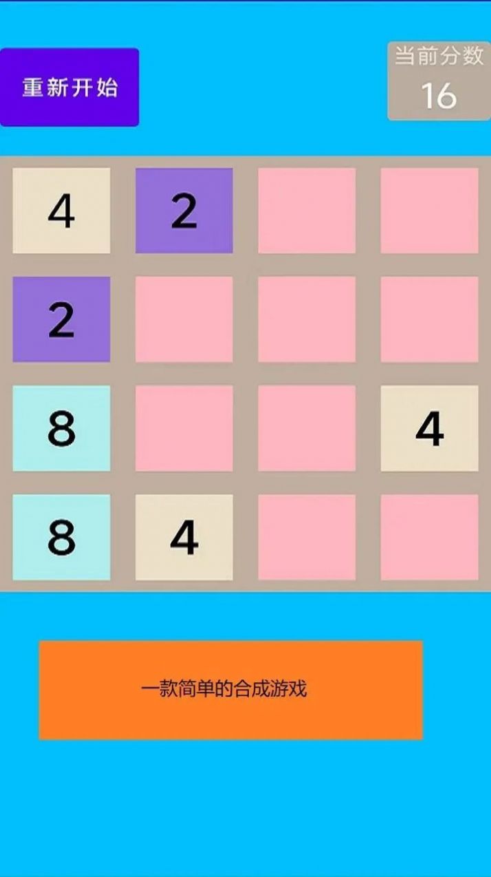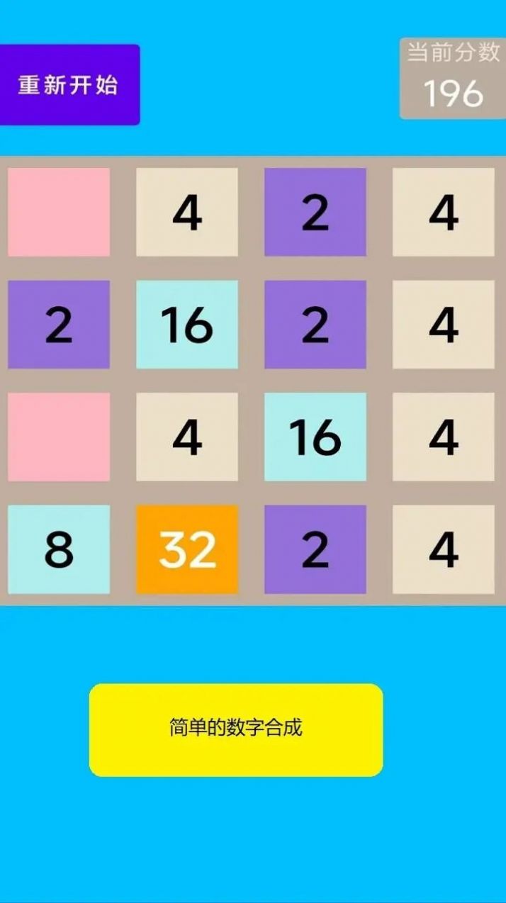 3、两个相同数字的方块碰撞后,会合并成一个数字,这个数字是原来数字的两倍。