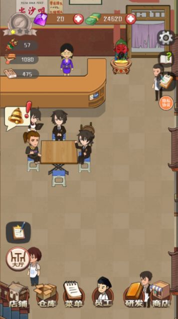 2、你可以随着游戏的进行,逐渐推出更多的美食菜单,并且吸引更多的食客来到你的餐厅用餐;
