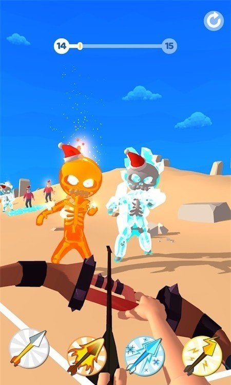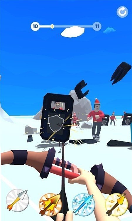 3、进而提升自己的技能和装备。可以解锁新的弓箭类型,让自己的挑战更加的轻松,喜欢的小伙伴来试试看吧。