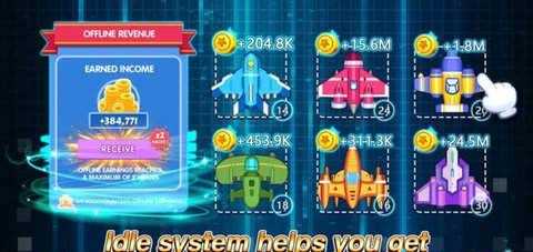 3、多款不同的战机皮肤可解锁使用,不同皮肤有不同射击特效。