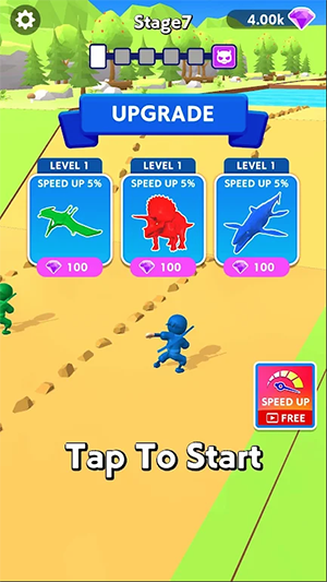 2、通过变形术的加持,来迅速的完成每一个赛道关卡的跑酷挑战。