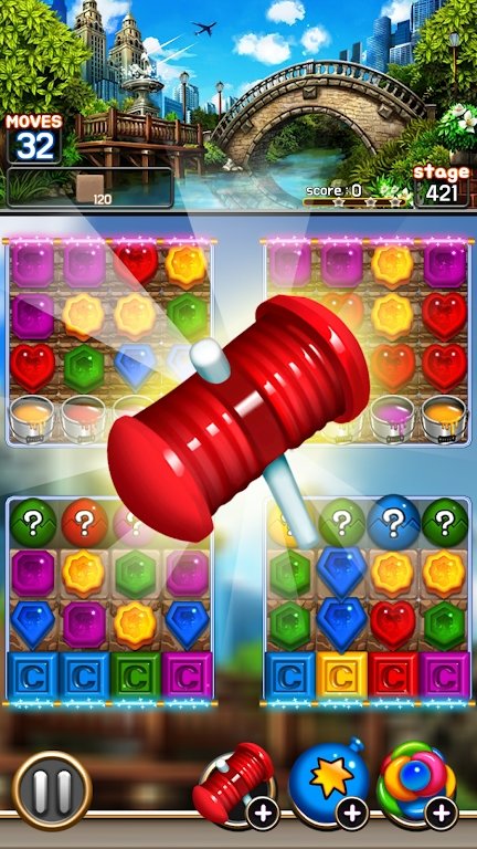 1、匹配各种形状的珠宝以爆炸它们以清除所有阶段。