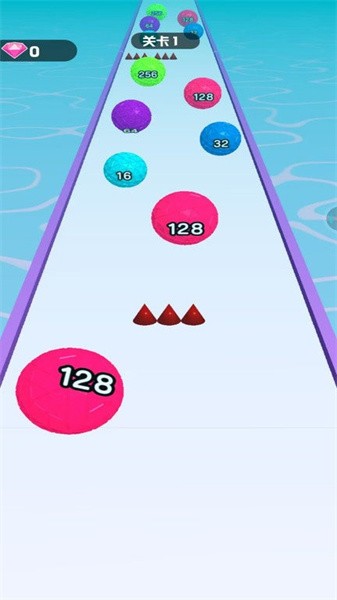 1、当球向前移动时,您必须避开尖刺和障碍物并合并相同的数字。