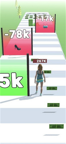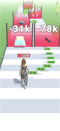 1、跑道上有各种漂亮的衣服,你捡起地上的钞票就可以买衣服。