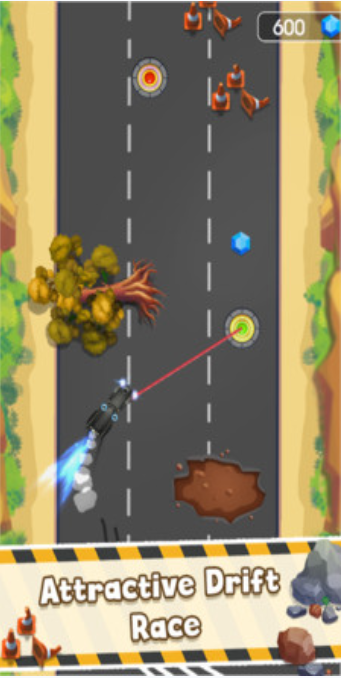 1、独特的玩法:利用绳索驱动赛车,在赛道上进行极限漂移,带给玩家前所未有的操控乐趣。