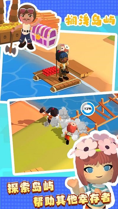 搁浅岛游戏上面的各种玩法都是超级的值得我们去很好的进行着学习的,我们将会去出现在荒岛上面去进行着生存,整个的生存过程都是需要我们去很努力的才能够去完成的,各种各样的建筑材料都等着我们去很好的解锁,玩家还可以在荒岛当中去不断的结交超级多的好朋友。