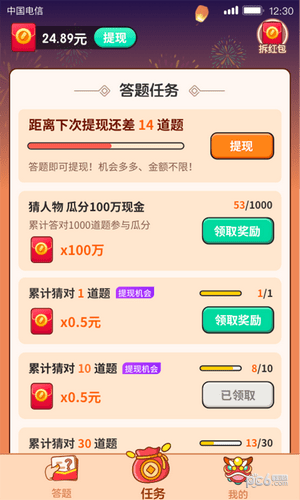 3. 红包奖励:每次答题都有机会获得实时红包奖励,答题越快且正确率越高,获得的红包奖励就越多。
