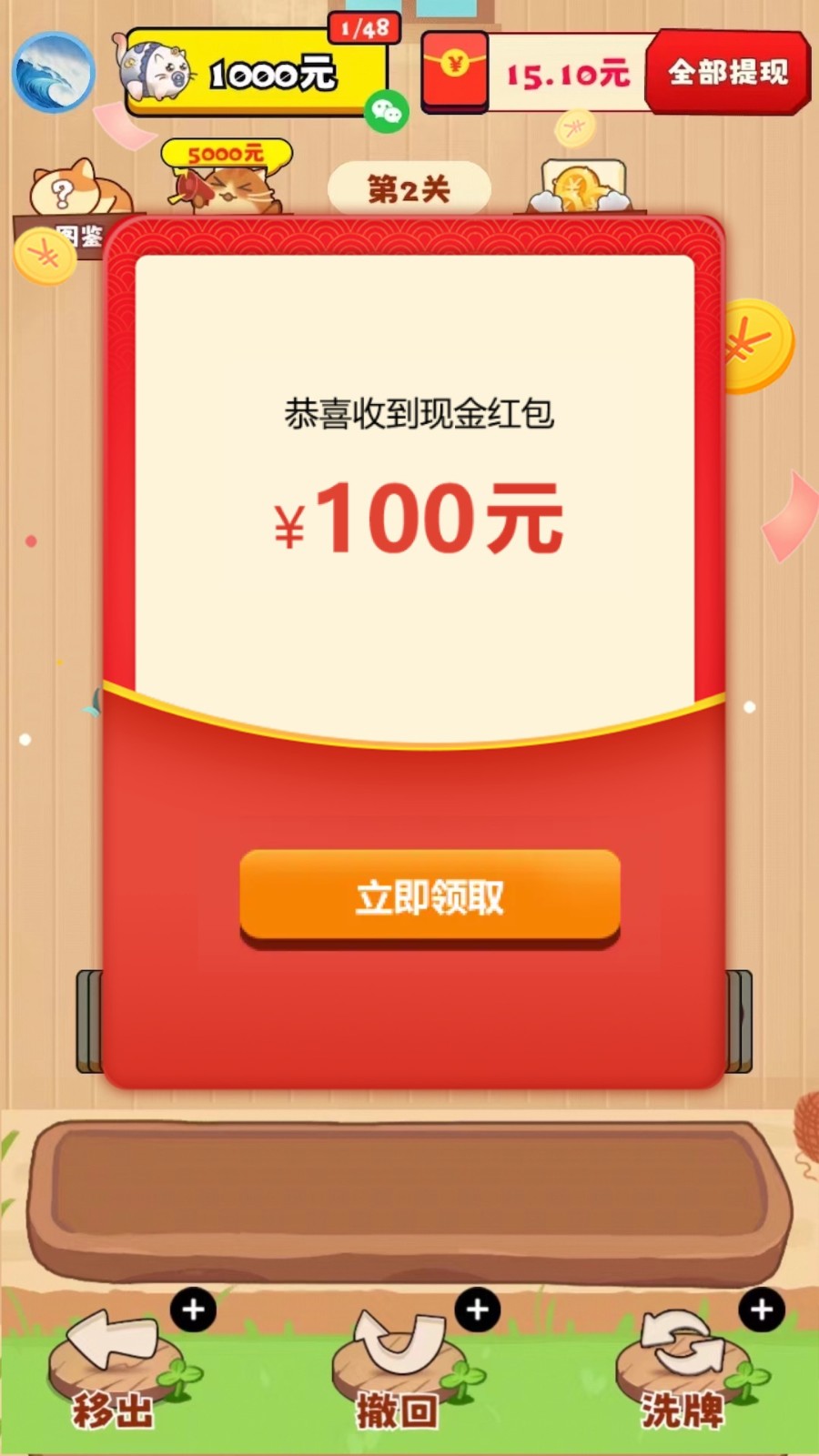 2、玩家需要通过消除相同颜色的金币来获得奖励和红包