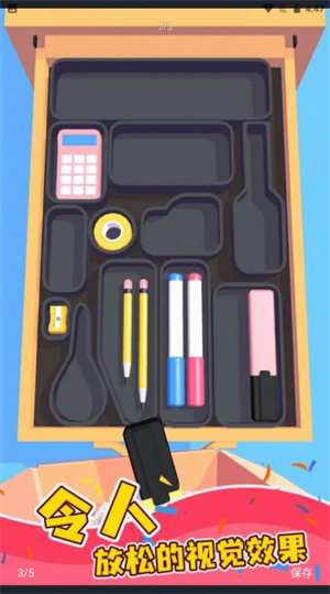 收纳小物件是一款非常好玩的手机解压收纳游戏,在这款游戏中玩家们能够体验到最趣味的解压玩法,在这里收纳各种的物件,将它们规整的摆放在收纳盒中,游戏中的每个收纳格子都只能刚好摆下物品所有游戏难度还是有的,在规定时间里面完成收纳,赶快下载体验吧。