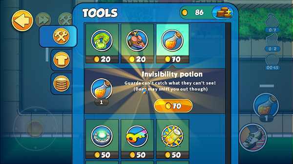 神偷鲍勃2是一款刺激的富有挑战的休闲益智类型的游戏,在游戏中独特风格游戏采用卡通化的图形风格和轻松幽默的故事情节,复杂任务每个任务都设计精妙,需要玩家巧妙利用道具和环境,规避安保系统和警察,玩家将会扮演聪明机智的神偷,参与各种刺激的犯罪活动,进行各种刺激的游戏体验。