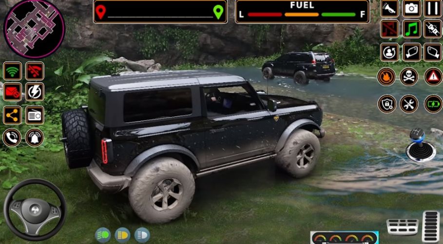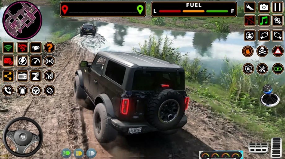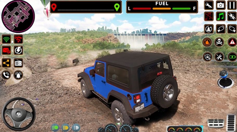 1.驾驶吉普车穿越山地:玩家需要通过触摸屏幕上的控制按钮来操控吉普车,驾驶在崎岖的山地路线上。