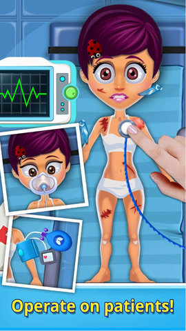 3、使用现实生活中的医生工具,例如听诊器,温度计,除颤器,针头来缝合伤口,以及镊子,注射器等等