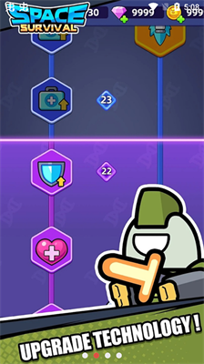 1、空间生存io内置菜单版是一款肉鸽放置战争主题的游戏。