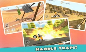 野蛮车手3D是一款非常好玩的手机赛车趣味竞速闯关游戏,在这款游戏中玩家们要驾驶自己的赛车在平面2D的游戏赛道中进行挑战,虽然是平面设计,但是游戏的赛道突出了3D的画面玩法,游戏中你需要驾驶自己的摩托车获取金币,顺利的通过跳跃来到达终点,更多的游戏体验等待你来下载感受。