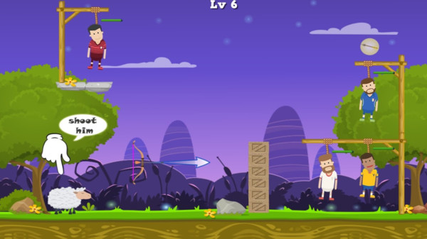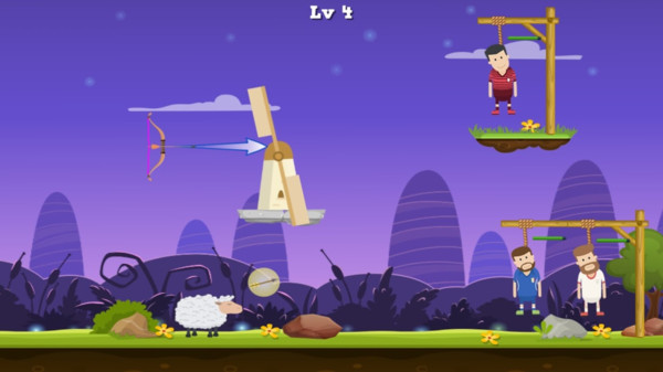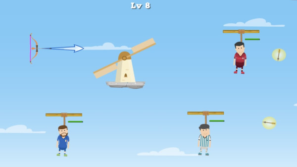 在每一关的挑战之中都会有着一些人质被绑在绳子上,你需要使用弓箭来将它们全部解救出来。