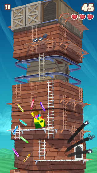 1、滑动塔楼方块来排好梯子去爬上更高;