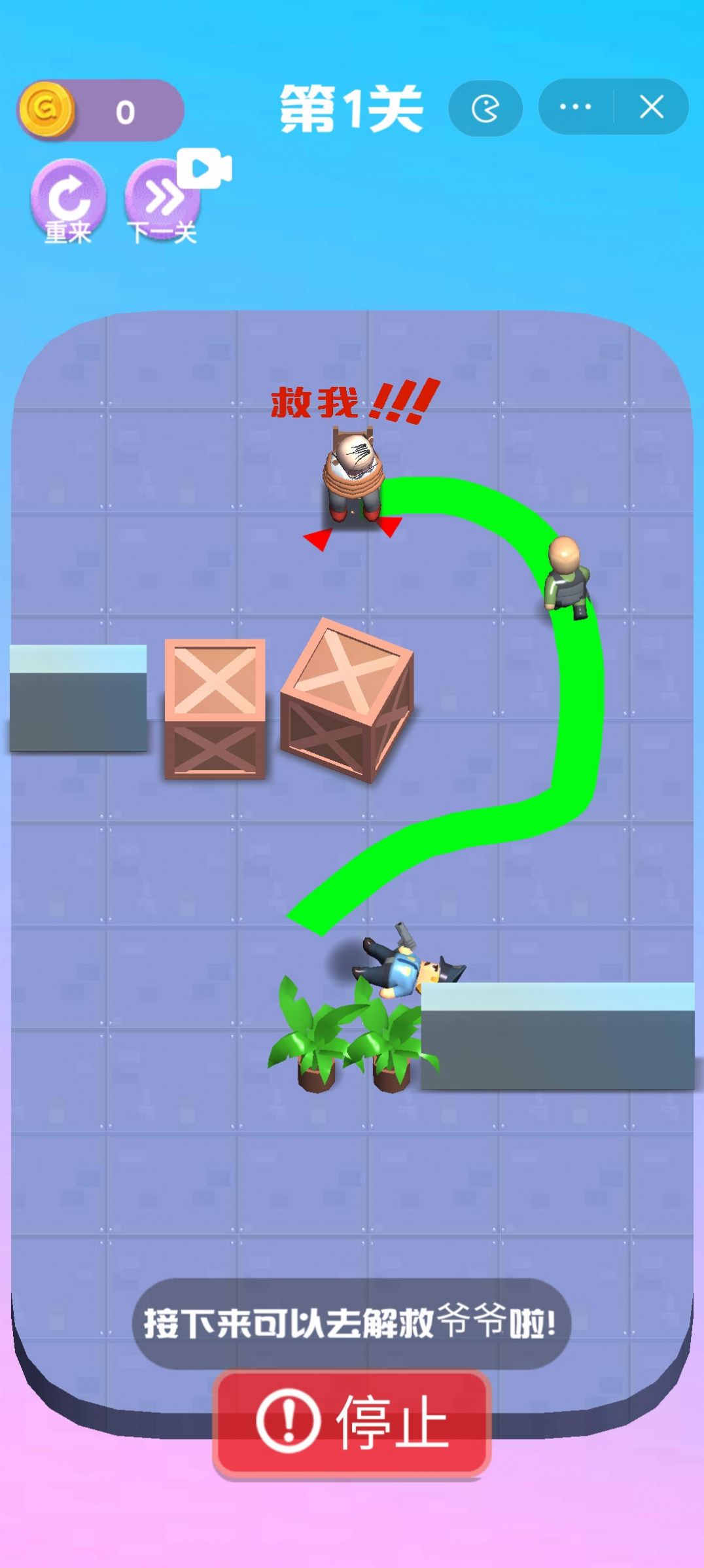 3、千万不要让火柴人受伤,尽量在保证安全的同时最终顺利解救成功。