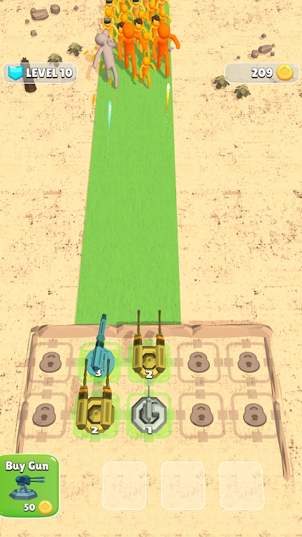 2、采用全新的“闪电合并战斗”模式,玩家可以通过合并自己的兵种,快速地获得一个更强大的单位,并将它投入战场,展开高强度的对决;