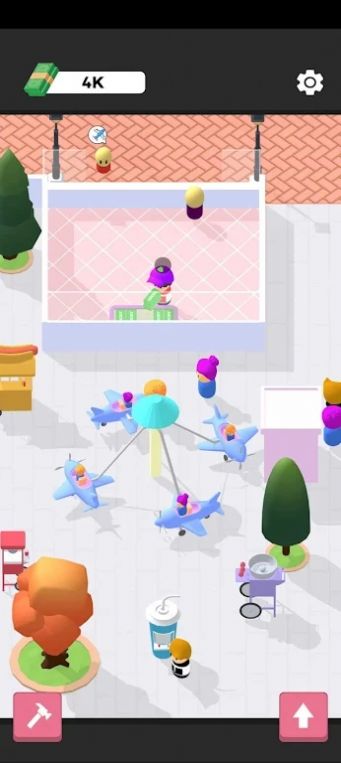 3、玩家还可以花费赚取的金币来升级游乐设施的外观、增加座位数量等等。当然,消耗的金币也会随着顾客数量的增加而赚回来。