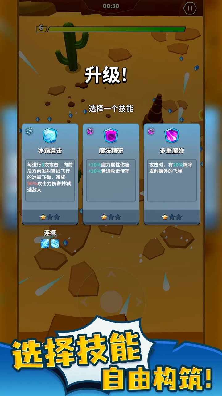 3、丰富多样的魔法技需要你去选择使用,这些技能会在升级时获得,每次升级获得的能力都是随机的。