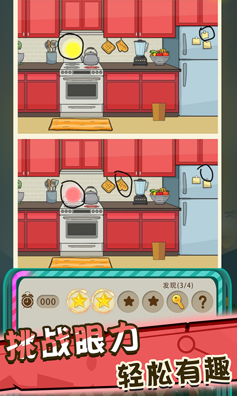 2、玩家将化身一名侦探,训练你的眼力,找出两张图片的不同之处。