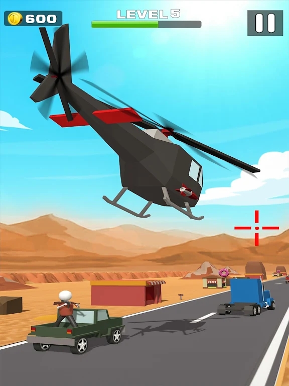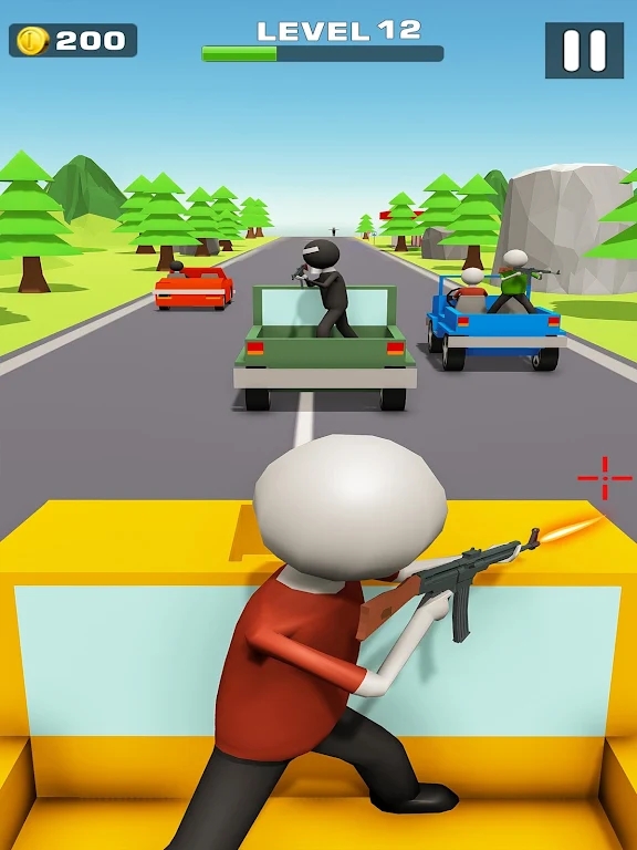 3、卡通风格的场景射击,自由的选择不同的武器开始射击,消灭沿路的敌人获取丰富的奖励。