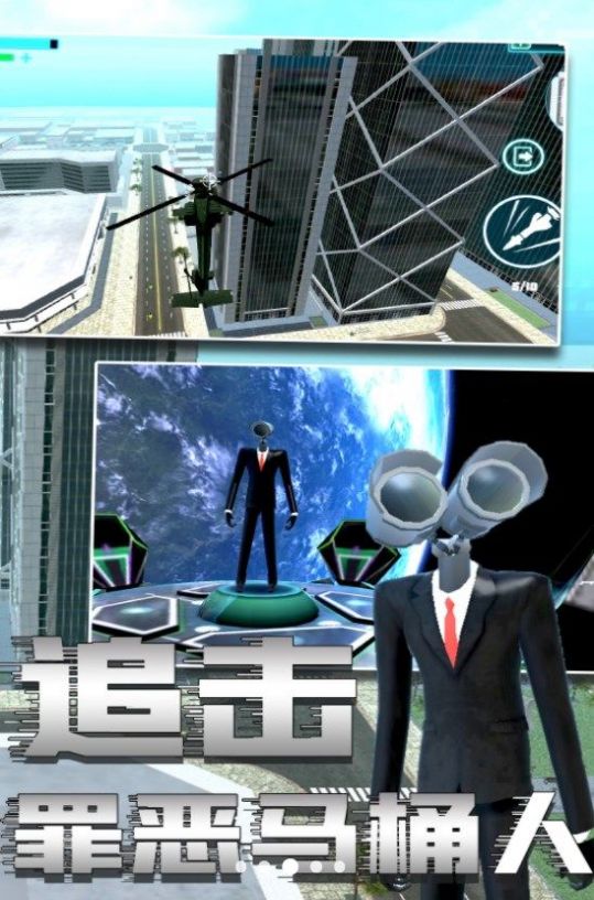 马桶人与监控人乱斗是一款城市冒险游戏,玩家需要在游戏内找到马桶人不要让它破坏你的城市,游戏内的主题很多,玩家都是可以选择的,感受不一样的游戏内容,这里的装备还有武器都是很多的,玩家可以根据自己的需求来选择,高清的游戏画面十分的舒适赶紧来下载试试吧。