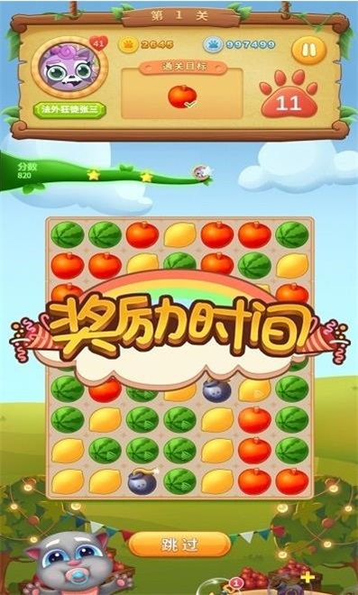 1、每天有大量指定消除任务,等待玩家轻松完成。通过该级别非常容易。你只需点击两个以上相同的水果即可触发消除效果。