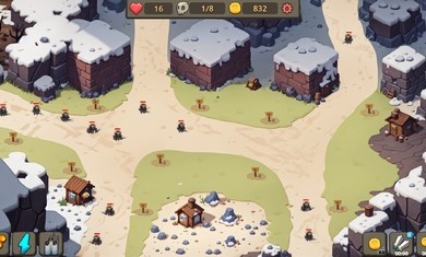 2、根据地形和敌人的攻击路径来决定塔的位置和类型,塔的类型包括箭塔、冰塔、火塔等等;