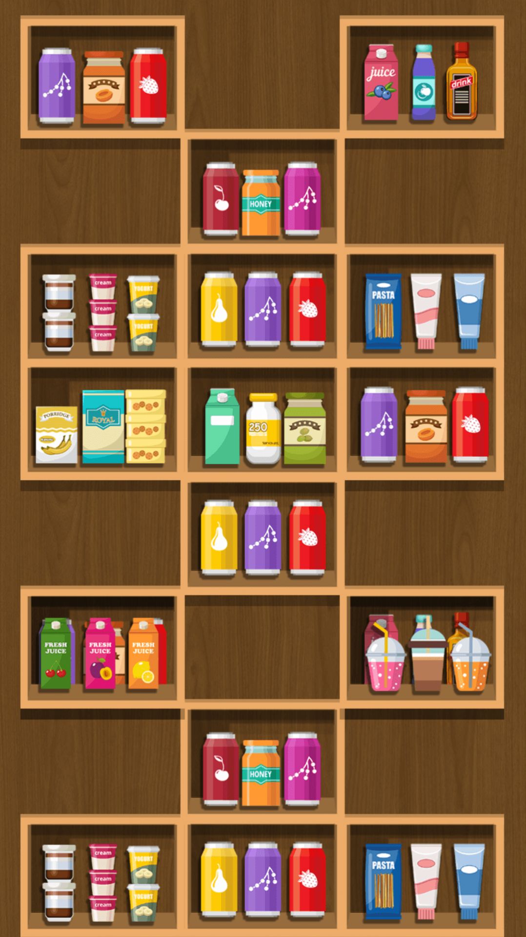 1、玩家需要将货柜中相同颜色的物品消除掉,以获得分数。