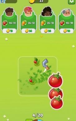 疯狂点击下方的种子,即可在农场种植农作物,成熟之后,滑动屏幕即可切割,收获农作物;
