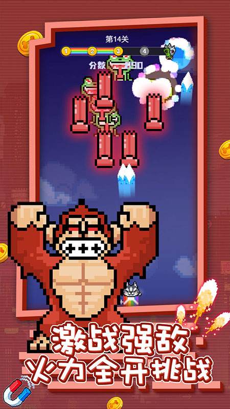 1. 多样的玩法模式:除了闯关模式外,游戏还提供了街机挑战模式,可以尝试不同的游戏方式,增加乐趣和挑战性。