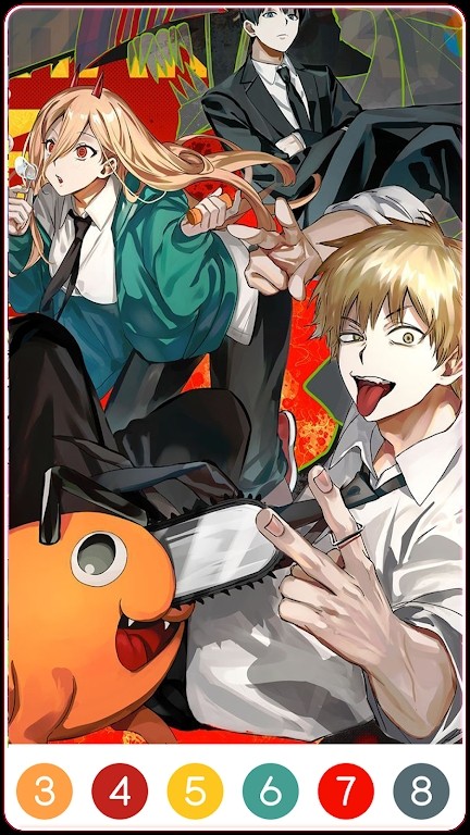 1、彩色电锯人着色是一款充满创意和乐趣的彩色动漫角色绘画手游。