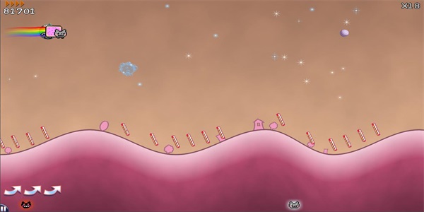1、彩虹猫之迷失太空汉化版是一款像素风的奇幻探索动作冒险闯关类游戏。