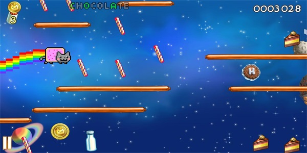 彩虹猫之迷失太空是一款非常好玩的手机跳跃闯关游戏,在这款游戏中玩家们要控制一直跳跃的彩虹小猫进行闯关挑战,平面的关卡设计,丰富的游戏道具体验,趣味的游戏画面,非常的休闲解压,游戏的玩法非常的简单,能够适应多年龄段的玩家们在线进行游戏体验,赶快下载感受吧。