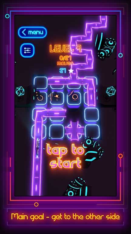 2、完美通过各种难关,游戏画面以独特的霓虹灯效果为主题