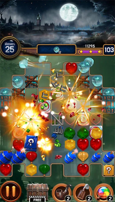 2、游戏中,玩家需要通过消除方块,找出珠宝的秘密之谜。