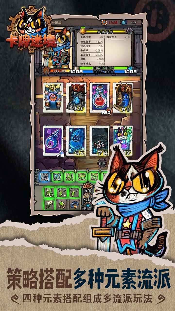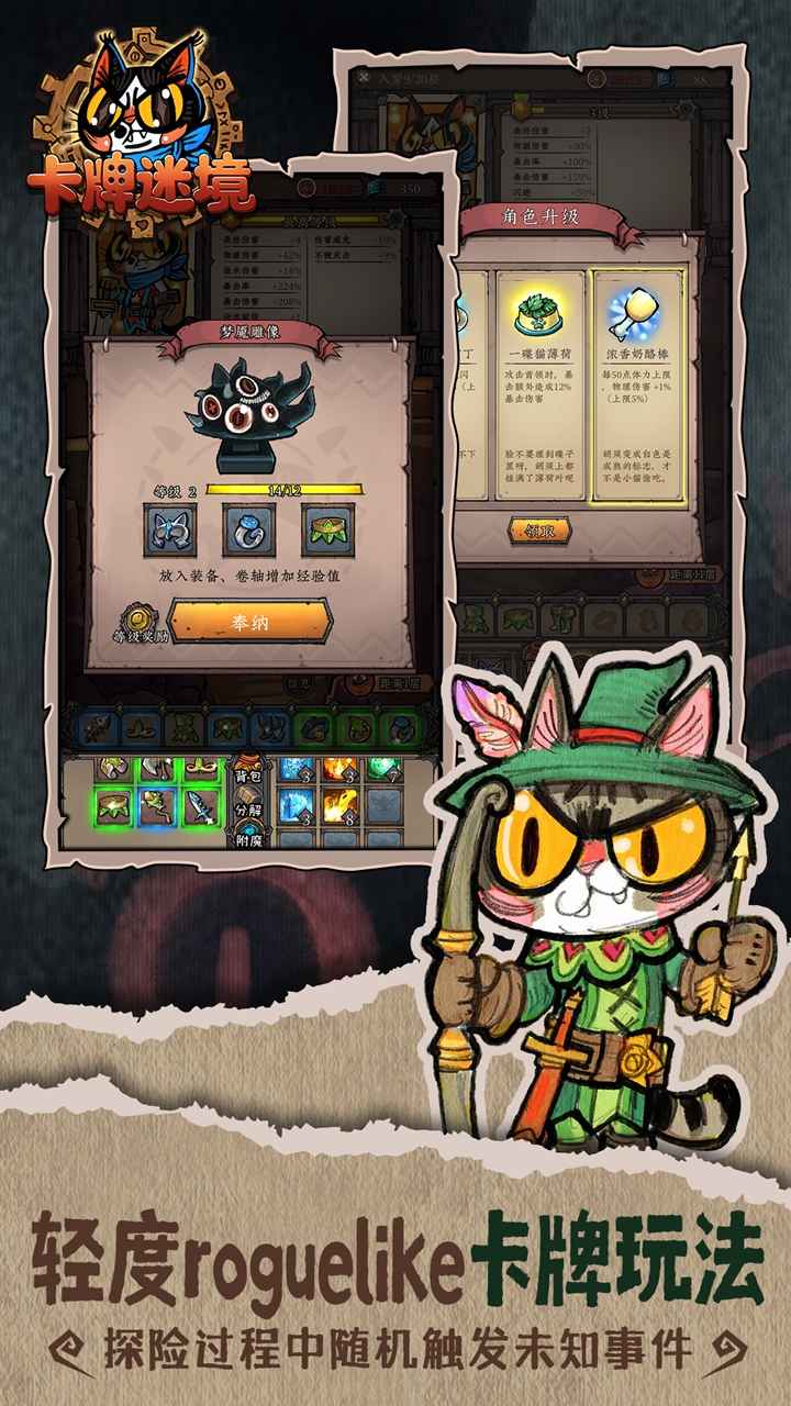 1、以猫咪为主题,结合了轻度roguelike和策略卡牌的玩法,带给玩家全新的游戏体验。