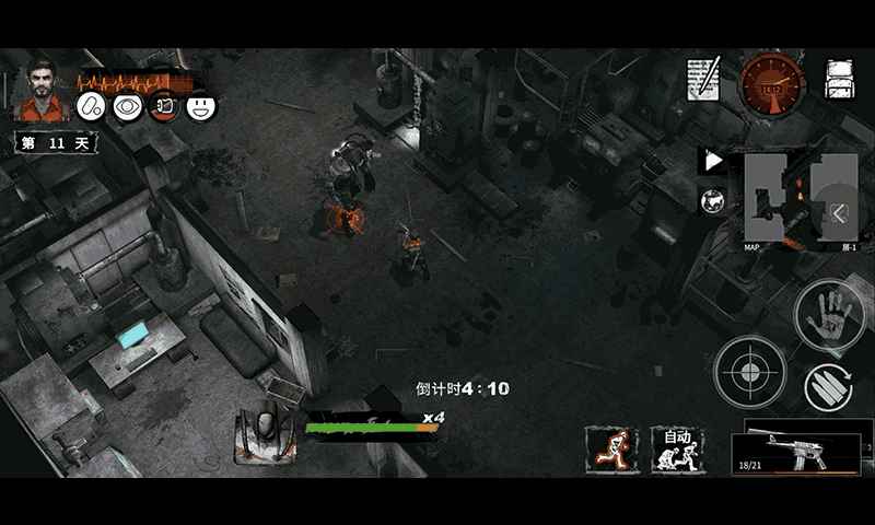 1】体力:体力为零时玩家战死。体力只有被攻击时才会流失,脱离战斗则自恢复。制造的攻击道具则可以更快击杀僵尸,也间接影响体力流失。