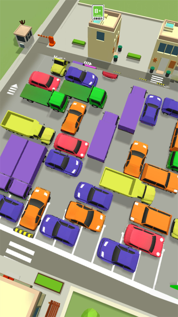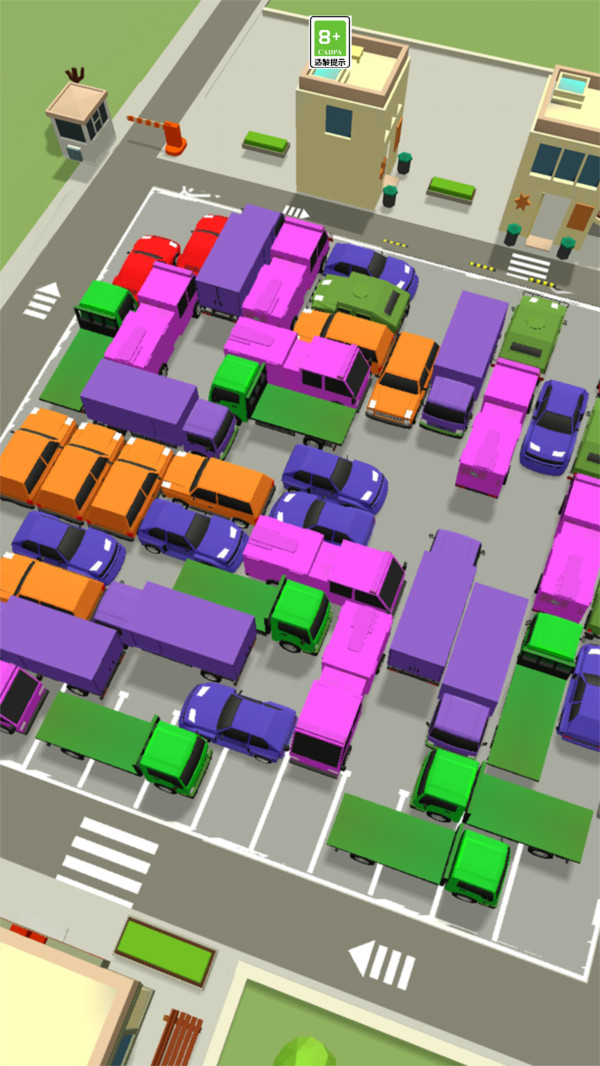 2、玩家需要在停车场中驾驶不同颜色的汽车,找到出口并顺利离开停车场