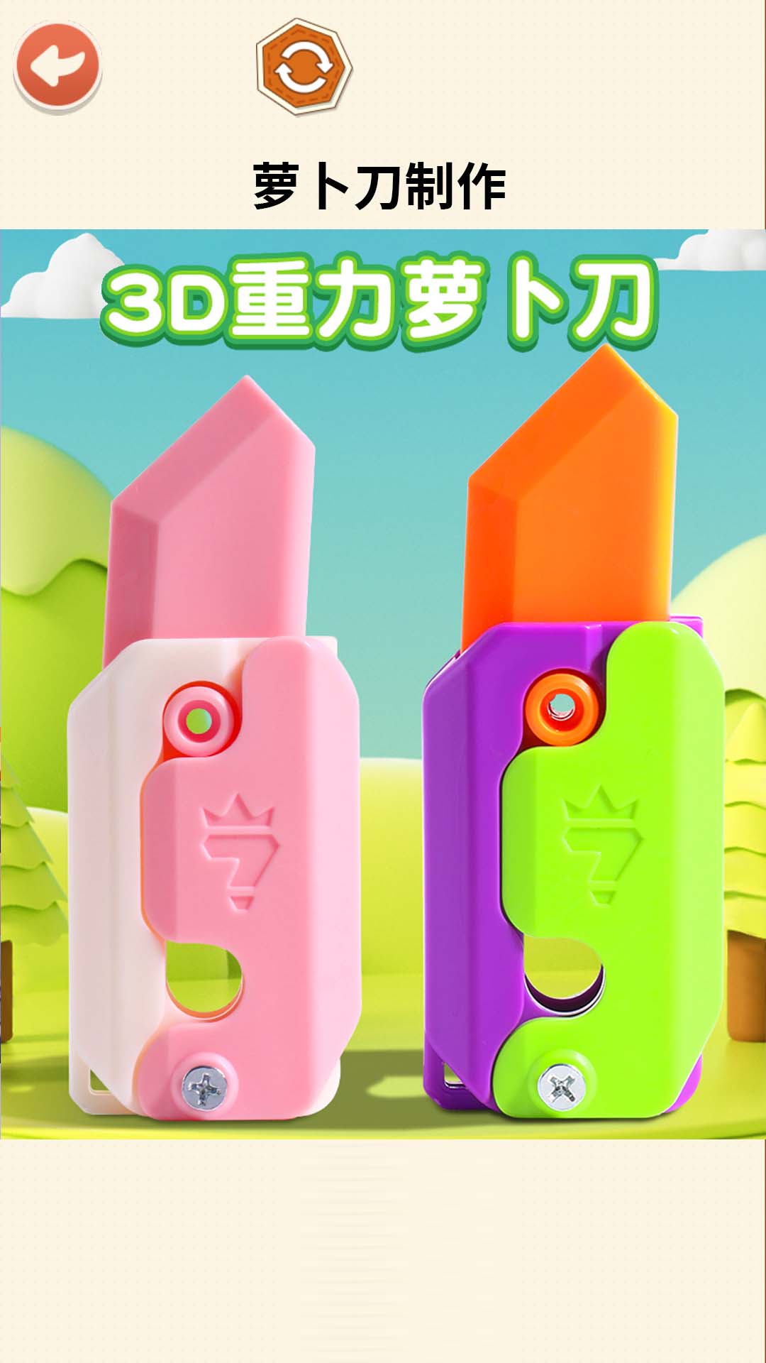 1、模拟真实的刀具制造过程,帮助您了解和学习萝卜刀的构造和使用原理;