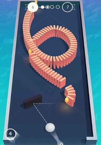 1、目标是让多米诺骨牌倒下!您可以通过瞄准球并将其发射到多米诺骨牌链的开头来完成此操作。