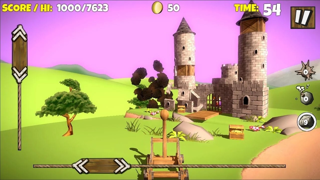通过设置弹射车的投掷方向来完成精确的打击,为自己配备更多火力强大的火药。