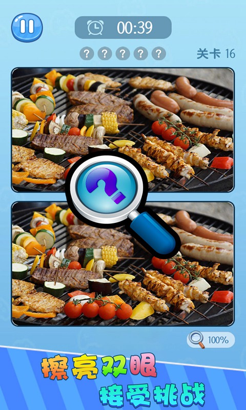 1、在两张看似相同的图片中,寻找不同的物品,通过触摸屏幕上的图片进行放大/缩小,以便更仔细地观察;