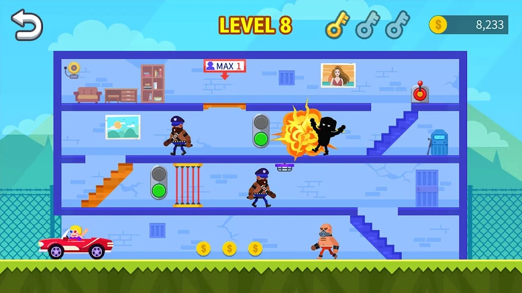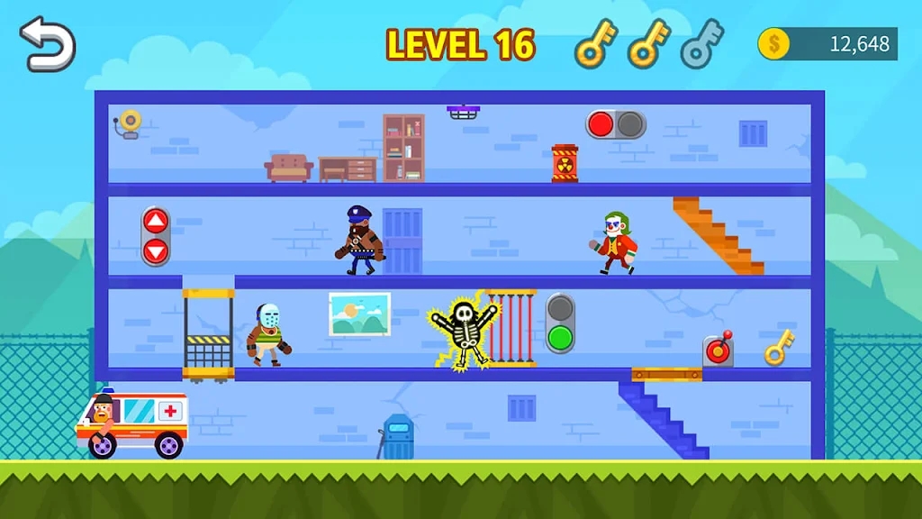 1、人在玩的时候是有真实感的,玩家要想办法帮助反派避开障碍物,需要抓住机会拿到开门的钥匙。