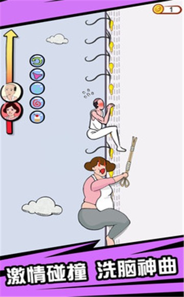 3、玩家需要控制一个大叔不断往上爬,不让后面的人追上。