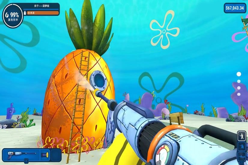1、以海绵宝宝的家为背景,让玩家个人化清洗菠萝屋。