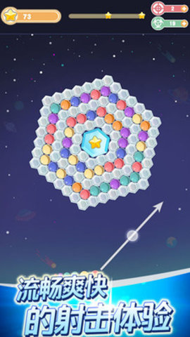 1、一款利用弹射角度来弹射小球并与屏幕上相同颜色的球碰撞来消除它们的游戏。